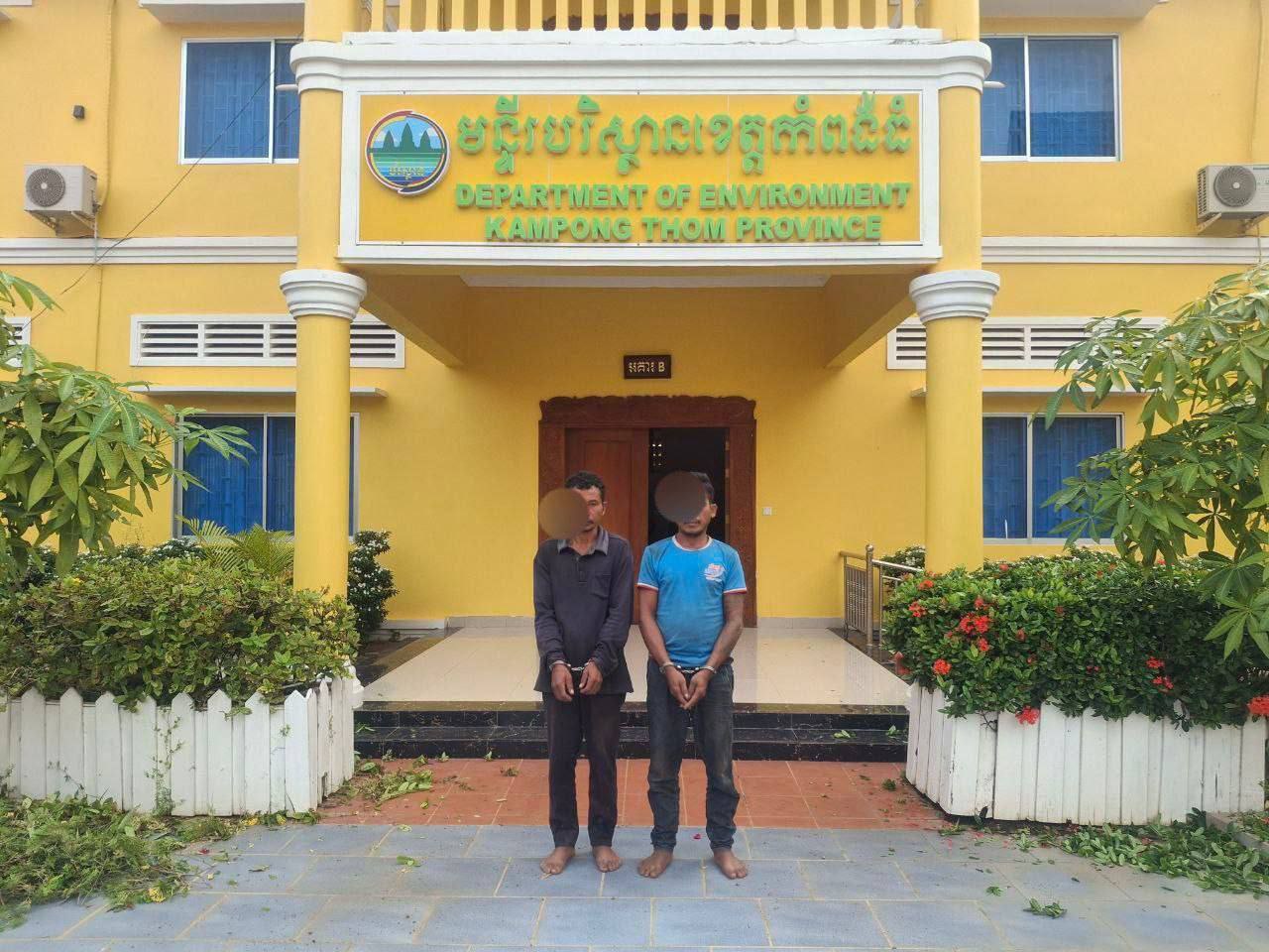 កំពង់ធំ៖ លោកតុប កក្កដា ប្រធានមន្ទីរបរិស្ថានខេត្តកំពង់ធំបានអោយដឹងនៅថ្ងៃទី០៧ ខែតុលា ឆ្នាំ២០២៤នេះថា មន្ត្រីជំនាញបរិស្ថានបានឃាត់ខ្លួនជនសង្ស័យ២នាក់ កាលពីនៅវេលាម៉ោង ២១:២០ នាទីយប់ ថ្ងៃទី០៥ ខែតុលា ឆ្នាំ២០២៤ ។