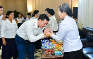 នាឱកាសនោះផងដែរ ឯកឧត្តម អ៊ុន ចាន់ដា អភិបាលខេត្តកំពង់ចាម ទទួលបានកិច្ចស្វាគមន៍យ៉ាងកក់ក្តៅបំផុតពីសម្តេចកិត្តិសង្គហបណ្ឌិត ម៉ែន សំអន ព្រមទាំងថ្នាក់ដឹកនាំផ្សេងទៀត សាច់ញាតិគ្រួសារនៃសព។