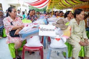 រសៀលថ្ងៃទី៣១ ខែធ្នូ ឆ្នាំ២០២៥ លោកជំទាវ ហ៊ុន ចាន់ធី ម៉ៅធនិន ប្រធានកិត្តិយសសាខាសមាគមនារីកម្ពុជា ដើម្បីសន្តិភាព និងអភិវឌ្ឍន៍ខេត្តកំពត បានដឹកនាំសមាជិកា និងអាជ្ញាធរមូលដ្ឋាន ចុះជួបសំណេះសំណាលសាកសួរសុខទុក្ខ និងផ្តល់អំណោយជូនបងប្អូនជនភៀសសឹកមកពីបណ្តាខេត្តផ្សេងៗ ដែលបាននិងកំពុងស្នាក់នៅជាបណ្ដោះអាសន្ន ជាមួយសាច់ញាតិរបស់ខ្លួនចំនួន ៩០៩គ្រួសារក្នុងស្រុកអង្គរជ័យ។