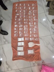 ម្សៅក្រាមសថ្លា សង្ស័យជាគ្រឿងញៀន៥៩កញ្ចប់ និងធំ ១កញ្ចប់ ។