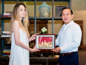សៀមរាប: ថ្ងៃទី៣ ខែមេសា ឆ្នាំ២០២៦ ឯកឧត្តម ហួត ហាក់ រដ្ឋមន្ត្រីក្រសួងទេសចរណ៍ បានទទួលជួបពិភាក្សាការងារជាមួយលោកស្រី Angelina Jolie តារាភាពយន្តហូលីវូដដ៏ល្បីល្បាញ និងជាប្រធានមូលនិធិ MJP ដែលបានបំពេញបេសកកម្មមនុស្សធម៌នៅប្រទេសកម្ពុជា និងនៅតាមបណ្តាប្រទេសជាច្រើននៅលើពិភពលោក។ កិច្ចពិភាក្សានេះ បានផ្តោតលើការពង្រឹងកិច្ចសហការក្នុងការផ្សព្វផ្សាយវិស័យទេសចរណ៍, ការការពារបេតិកភណ្ឌវប្បធម៌ និងធម្មជាតិនៅកម្ពុជា។